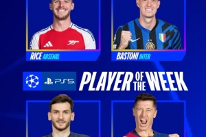 欧冠官方本轮最佳球员候选:赖斯、莱万、巴斯托尼、K77